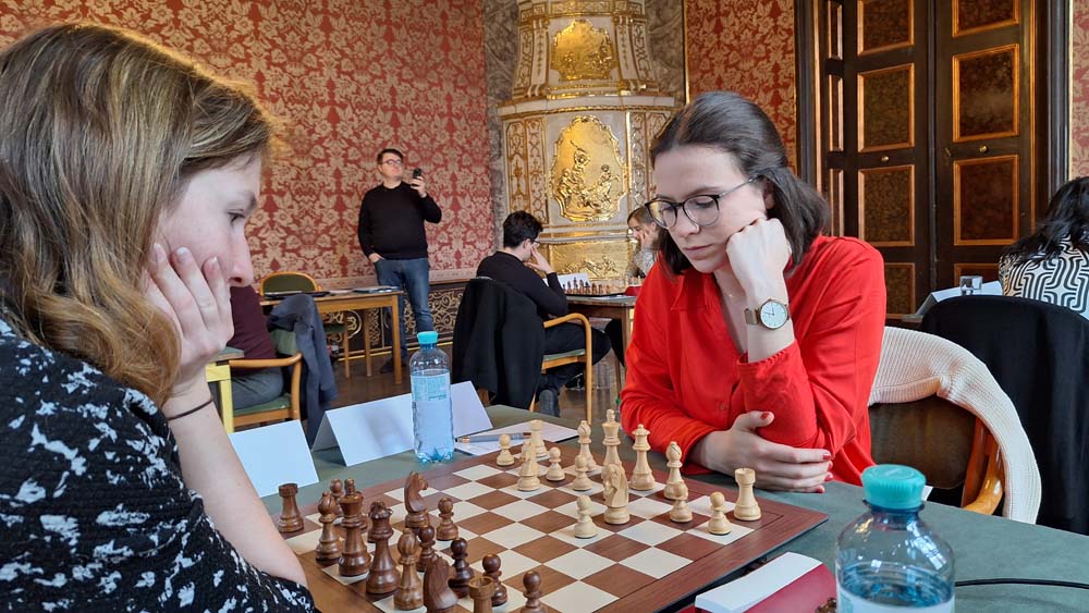 The Italian Marina Brunello is also victorious against Nikola Mayrhuber and Jasmin-Denise Schloffer against Denise Trippold. Two encounters ended in a draw. Four players are ahead in the table with 1.5 points each. The third round will take place tomorrow Tuesday at 3.00 pm. (wk)