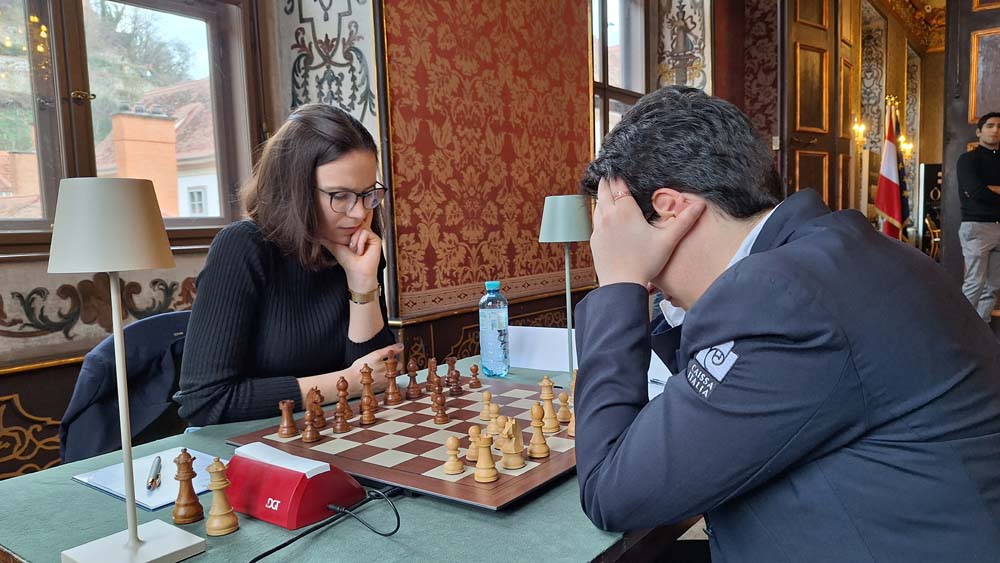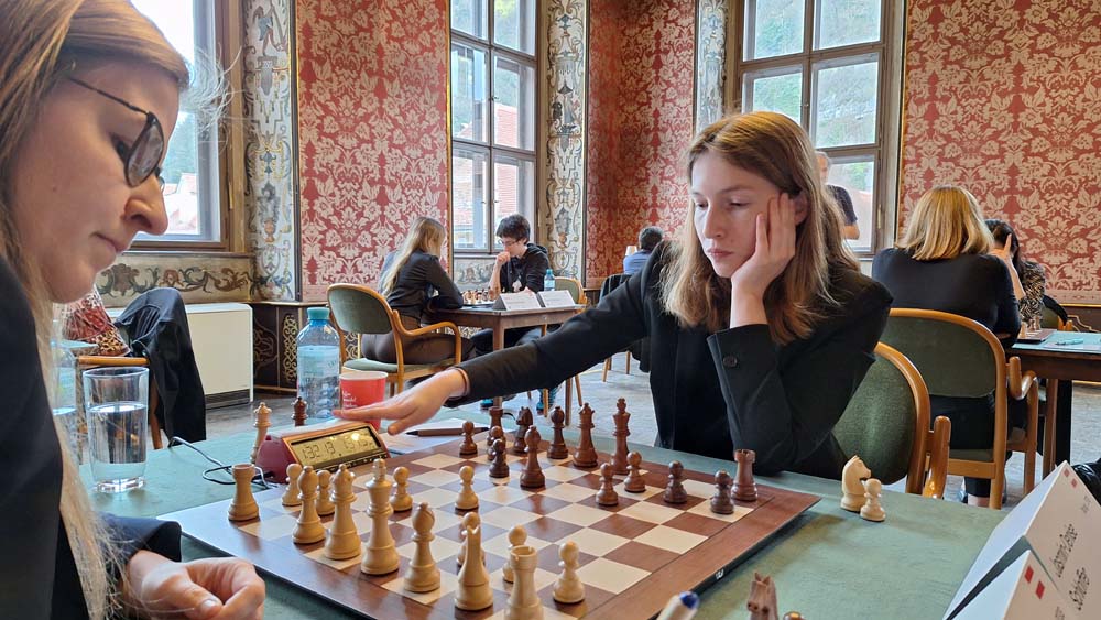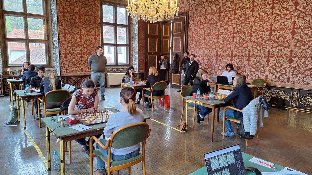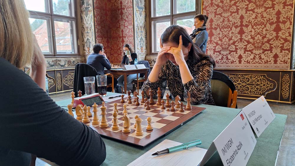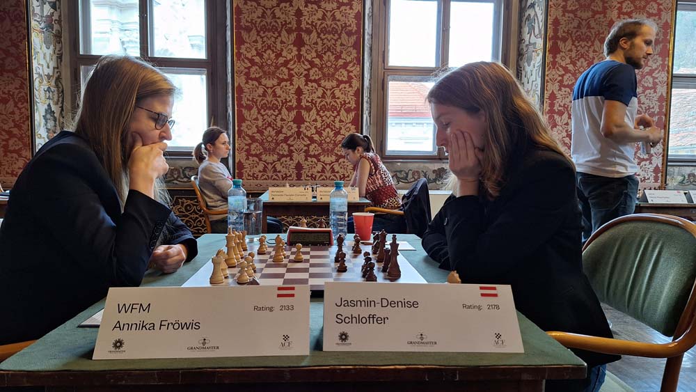 Behind the leading duo, Ekaterina Atalik is in third place with a win against Lilit Mkrtchian. In duels between Austrians, Annika Fröwis wins against Jasmin-Denise Schloffer, while Nikola Mayrhuber and Chiara Polterauer draw their game as well as Marina Brunello and Denise Trippold.