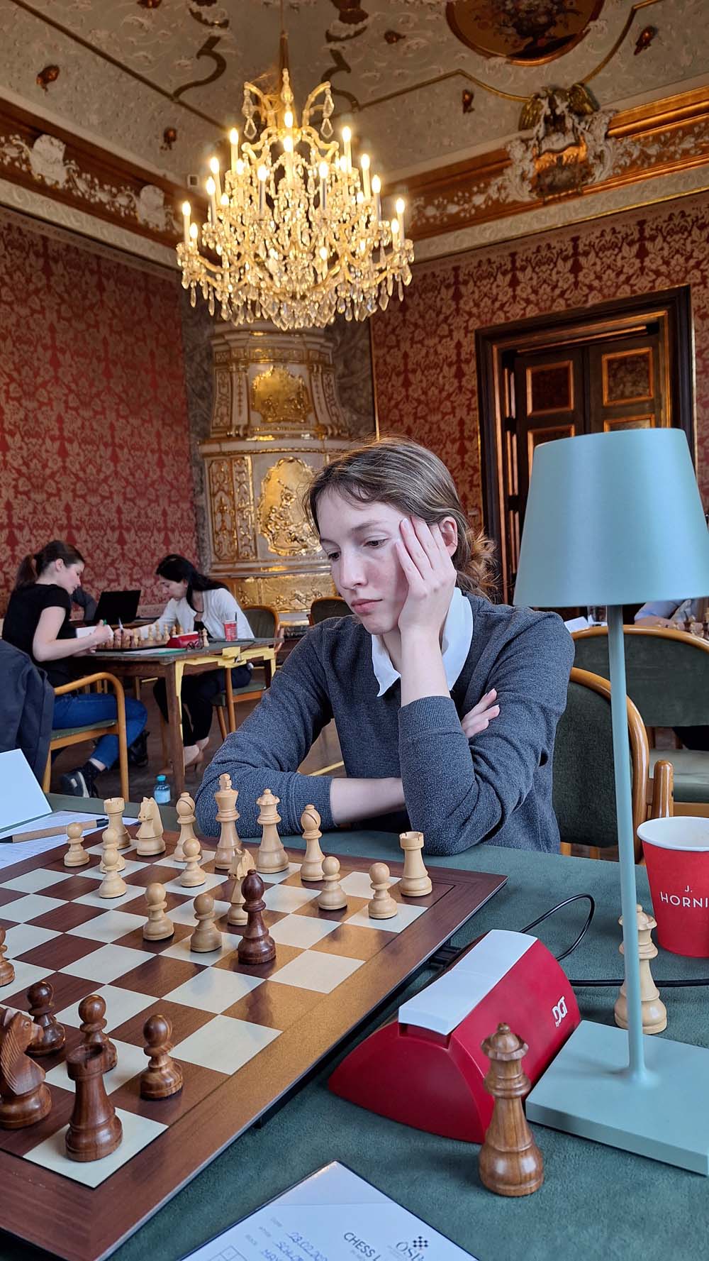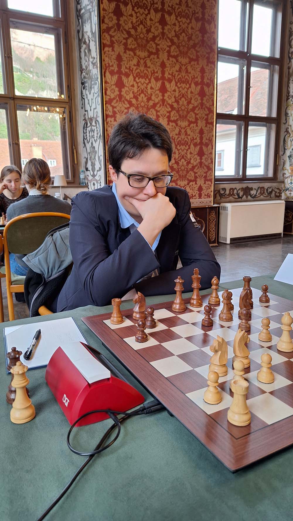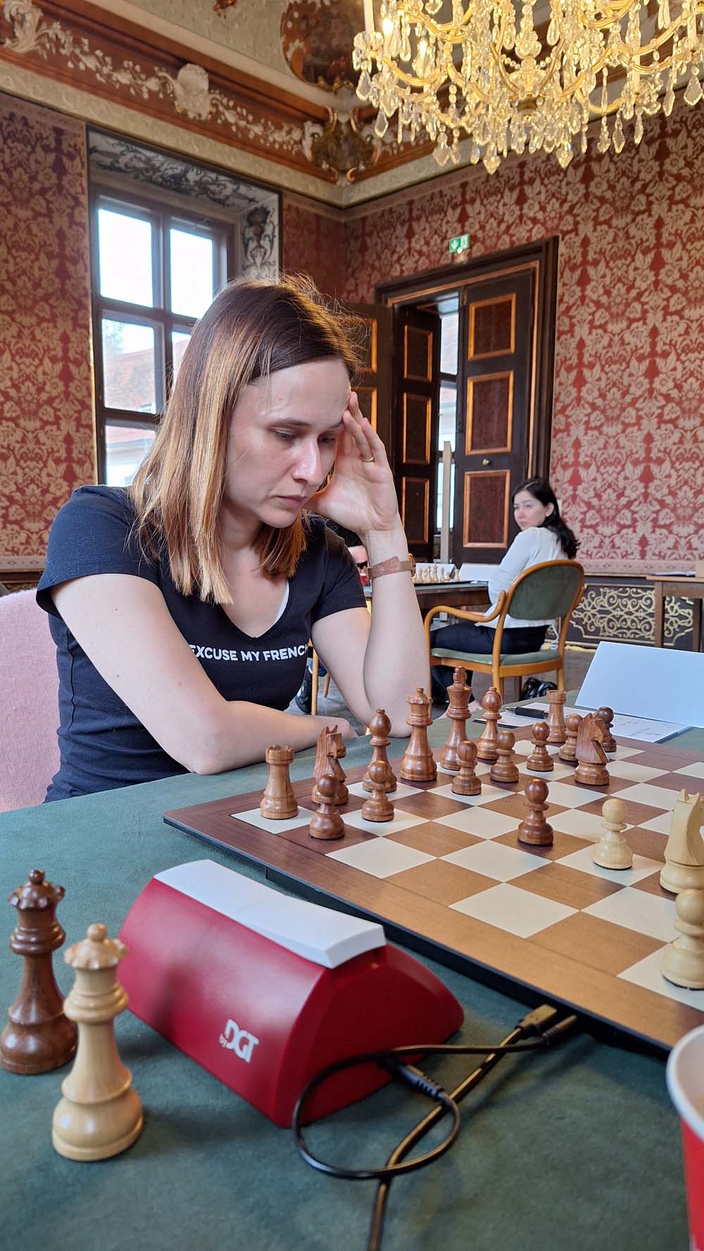 Austria’s surprise player Schloffer could have been in the lead instead of Bodnaruk. However, after a good game against the Russian, she plundered in an endgame with a knight and pawn. However, she coped well with this setback, defeating a hitherto hapless Nikola Mayrhuber in the afternoon and is in the third place with three and a half points ahead of Ekaternia Atalik (3).